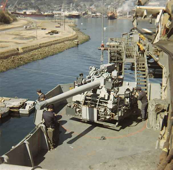 the starboard aft gun. The Hanna was docked in either Yokouska or Sasebo, Japan.